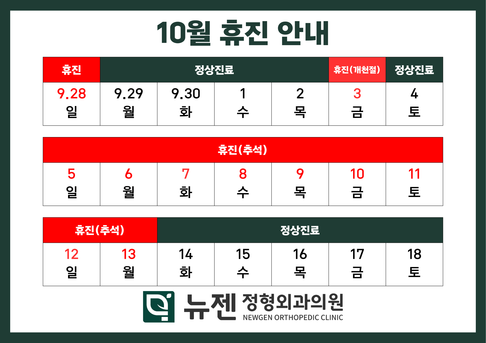 뉴젠 정형외과의원 병원소개 원장 소개 병원 소개 병원 유튜브 시설 안내 오시는길 뉴젠 원인치료법 첨단재생의료 중점 난치성 통증 치료 항노화 및 질병예방 재생치료 및 줄기세포 치료 SVF PRP DNA(PDRN) / 콜라겐 뉴젠 특수시설 및 장비 모바일 CT, BMD, 초음파검사 1:1 체형교정 운동시설 스마트 체형분석 시스템 및 의료기기 온라인상담/커뮤니티 공지사항 온라인문의 온라인상담 치료사례 치료후기 비급여항목 로그인 회원가입 병원소개 원장 소개 병원 소개 병원 유튜브 시설 안내 오시는길 뉴젠 원인치료법 첨단재생의료 중점 난치성 통증 치료 항노화 및 질병예방 재생치료 및 줄기세포 치료 SVF PRP DNA(PDRN) / 콜라겐 뉴젠 특수시설 및 장비 모바일 CT, BMD, 초음파검사 1:1 체형교정 운동시설 스마트 체형분석 시스템 및 의료기기 온라인상담/커뮤니티 공지사항 온라인문의 온라인상담 치료사례 치료후기 비급여항목 온라인상담/커뮤니티 공지사항 온라인상담/커뮤니티 공지사항 공지사항 온라인문의 온라인상담 치료사례 치료후기 비급여항목 공지사항 뉴젠정형외과 10월 휴진 일정 2025.09.29 목록 네이버예약 온라인문의 온라인상담 오시는 길 유튜브